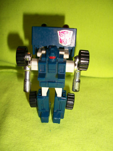 Profile: The more seemingly worthless a gadget, the more Pipes is fascinated by it. And he finds Earth a veritable gold mine of worthless gadgetry: carrot juicers, musical wristwatches, electric hair combers - the capacity of the human imagination never ceases to amaze Pipes! He is so enthralled by all this that he now collects these artifacts, creating a sort of mini-museum of American consumerism in an unused corner of the Ark. Pipes doesn't allow his hobby to interfere with his responsibilities to the Autobot struggle - at least not usually. Even while on a mission, he's been known to pull over to the curb and enviously ogle a human walking by using a hand-held, portable electric fan. Pipes explains, "The true collector never knows when or where he'll discover his next treasure."