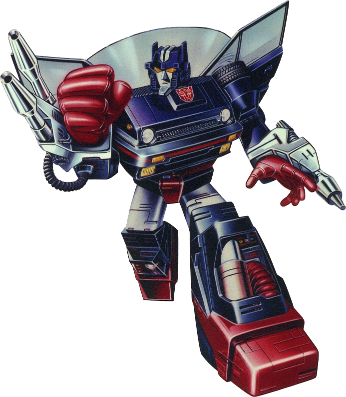 Abilities: Skids has an enormous memory storage capacity. He can record visual information virtually instantaneously, and has been known to scan an entire college library's collection in two hours. In Autobot mode, he carries a liquid nitrogen rifle, which shoots a stream of the super-cooled element up to 600 feet. He also uses an electron blaster, which emits a burst of 20,000 volts and can short-circuit virtually any mechanical foe. In car mode, his brakes, by far the best among the Autobots and courtesy of Wheeljack's genius, can decelerate him from 60 mph to zero within 25 feet. Of course, such sudden stops aren't too good for the well-being of any car, including Skids.