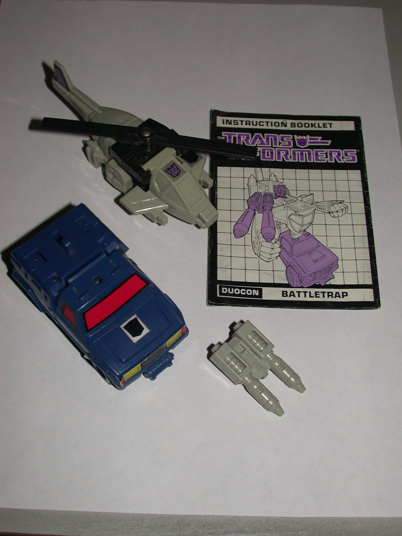 **Battletrap IS ANOTHER RECENT eBay ACQUISITION.  he IS IN NEAR MINT CONDITION WITH only minor wear.  he IS considered complete and has his Double-Barreled Assault Missile Launcher AND INSTRUCTIONS, BUT does not HAVE HIS TECH-SPEC. Working to acquire those soon.**