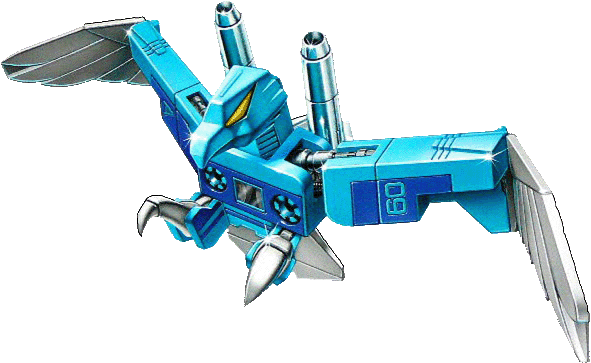 Never stops talking except to refill his fuel tank. Knows over 250 Earth and 6300 alien languages, but never has anything important to say in any of them. Other Decepticons often threaten to rip out his vocal circuitry and wrap it around his beak to shut him up. Carries two deafening high decibel sonic boomers. Combines with Beastbox to form robot Squawkbox. | |||||||