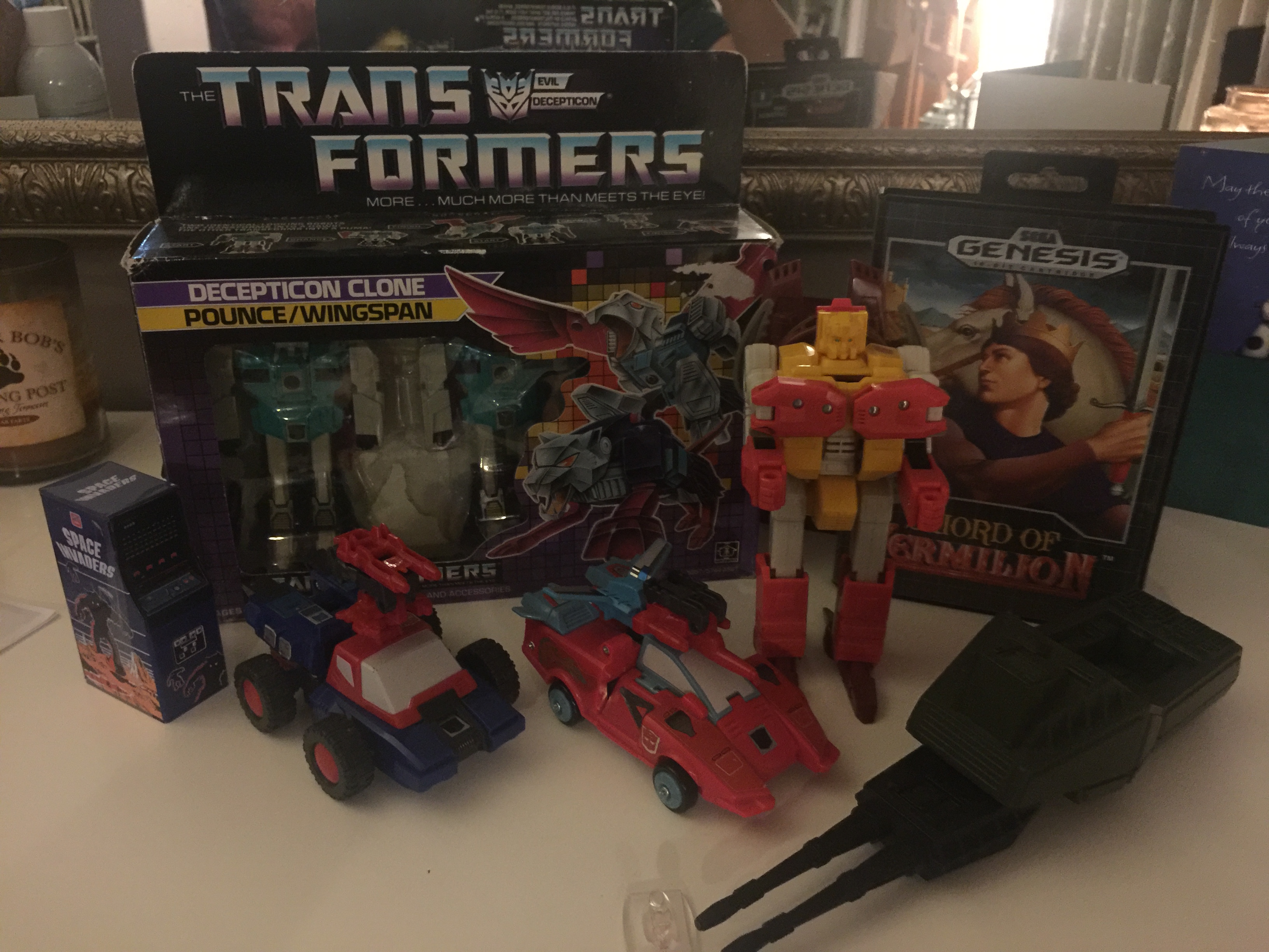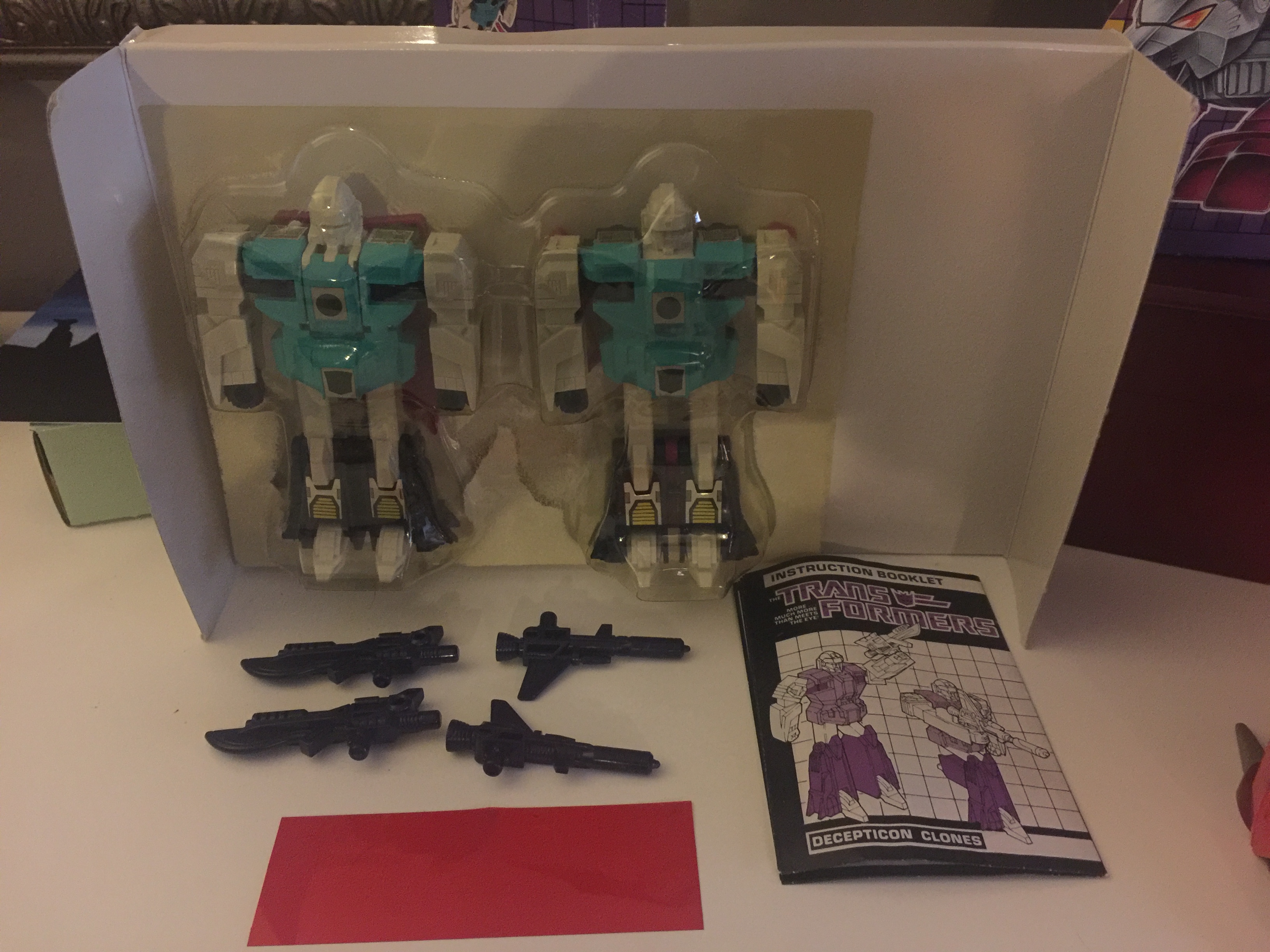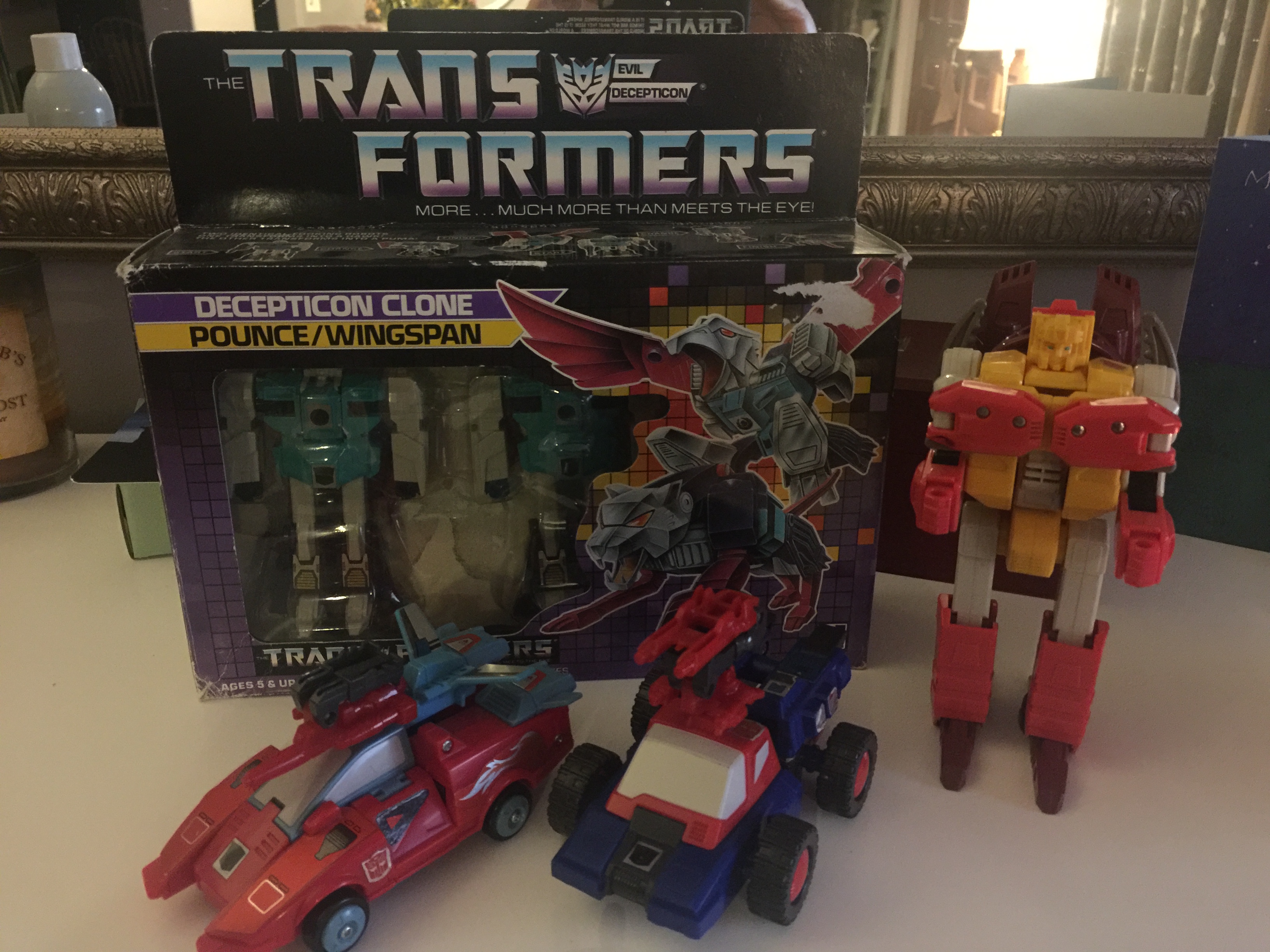 Wingspan is in pretty good shape. He and his clone brother were my biggest victories in my eyes on this deal. They are complete with their box, their weapons, internal backer card and bubble, instructions and tech-spec decoder. Joints are pretty tight, and minimal sticker wear. As mentioned, I have him complete with his weapons, the two Electro-Burst Rifles. As seen in the photos, when I took advantage of that sale, I also got a boxed Pounce and Wingspan, some Targetmasters, as well as some other miscellaneous things. Check back for better pictures of just him.**