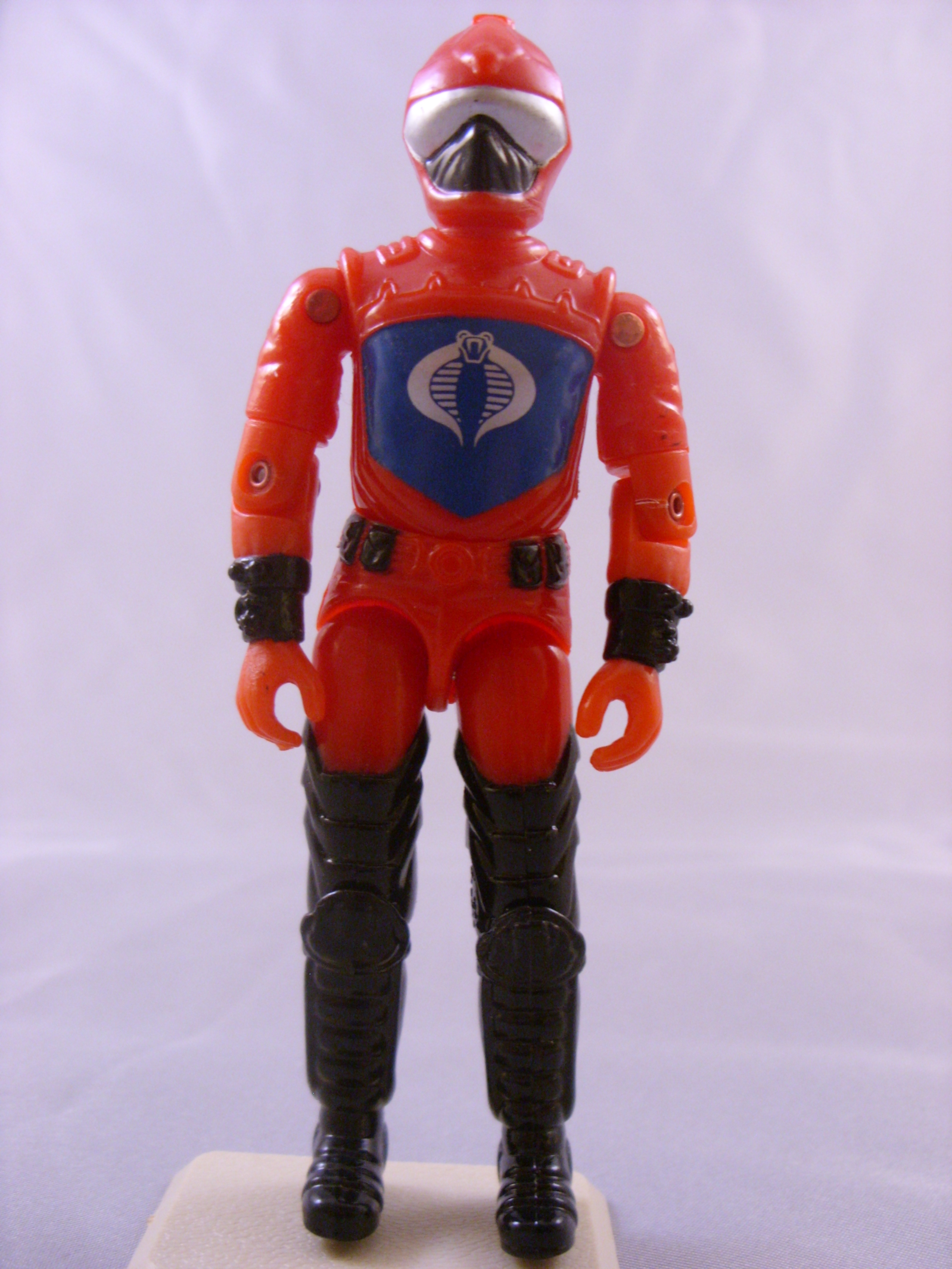 My Personal Notes: HISS Drivers were always one of the ones I really wanted but never had as a kid. I even remember by cousin Bo had one and had taken it with him to summer camp with us. I thought it was so cool already, and then was jealous that not only did he have this cool guy, but he got to bring it with us to camp. Later on, when he handed off his Joes to me because he was moving on to other things, I remember the bittersweetness of getting the H.I.S.S. Tank from him, but without the driver. Anyway, getting back to the subject, I finally got him while working to fill the holes in my collection in early 2012. I made sure to get one in great condition, and that his Cobra symbol hadn't been worn off his chest as so many are. See pic below. |