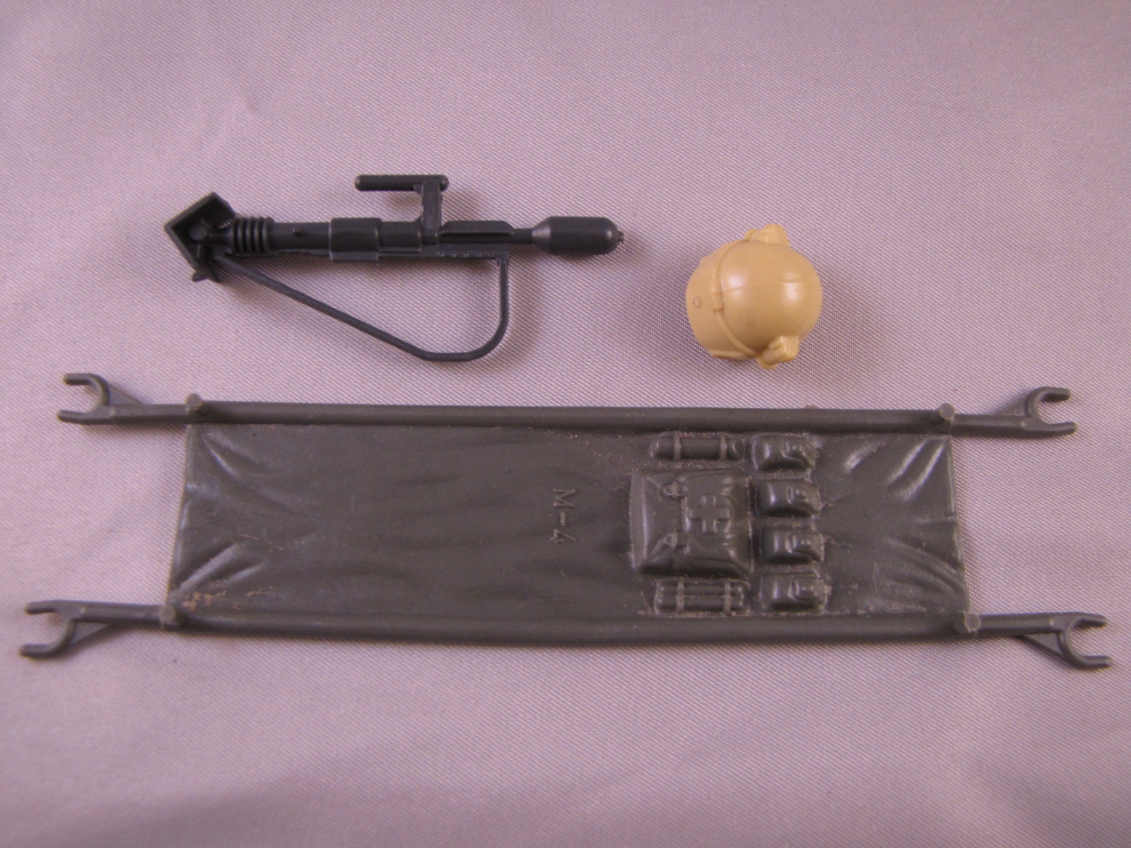 My Personal Notes: I have had Doc since I was a kid, and have kept him in good shape and complete over the years.  He has his helmet, flare launcher, stretcher and file card.