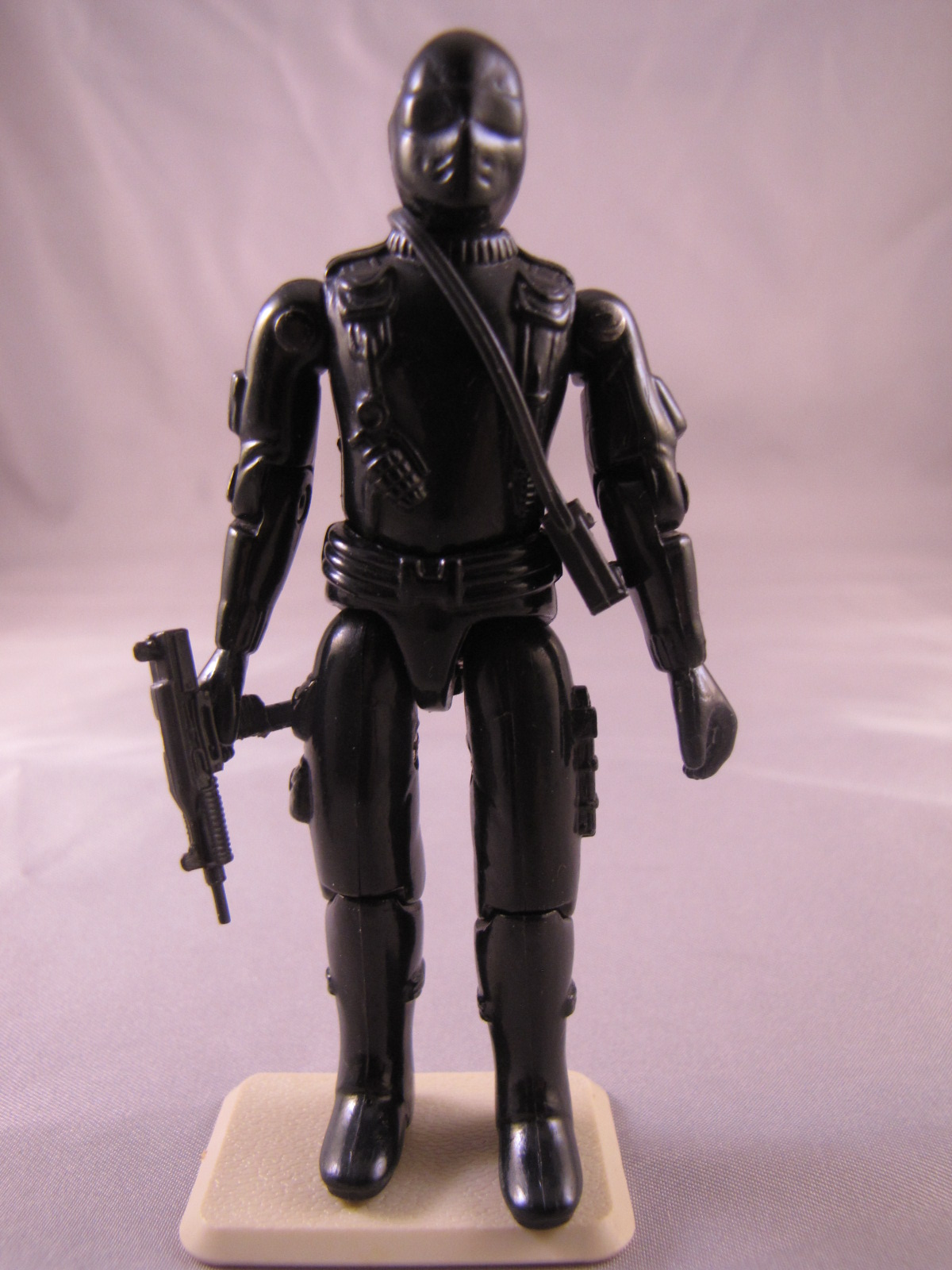 My Personal Notes: Like most other kids, I loved Snake Eyes as a kid. He was one of my favorites. I am not sure how it happened, but somehow over the years his right are got broken at his elbow. It wasn't when I was playing with him, but sometime while in storage/transition. The even weirder part is I didn't know where the broken piece went. What also sucked is he was the 1982 straight-arm Joe without swivel arm battle grip. I also had lost his gun, so while I hated to do it, I replaced him with a unbroken straight-arm one that had all of his accessories in early 2012 off of eBay. I will probably keep my broken one still just for sentimental reasons. Update: I did as I said, and got another complete one off of eBay in 2012. He is a complete straight arm in great condition. |