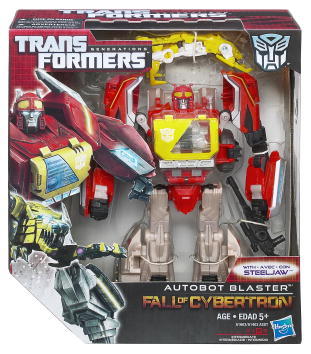 This dynamic duo will be your fiercest Autobot team yet! Your Autobot Blaster figure converts from dangerous robot mode to communications truck mode, where he can launch his sonic assaults on his Decepticon enemies. At his side is a tough Steeljaw figure, who ejects from data disc mode at the touch of a button to auto-convert to robot mode! Together they’ll make double trouble for the Decepticons, and the outcome of the battle is all up to you!