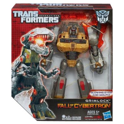 This dynamic dino will be your fiercest Autobot yet! Your Grimlock figure converts from dangerous robot mode to Tyrannosaurus Rex mode, with glowing eyes and mouth and a monster chomping jaw! Keep converting him back and forth so his Decepticon enemies can’t keep up with him!